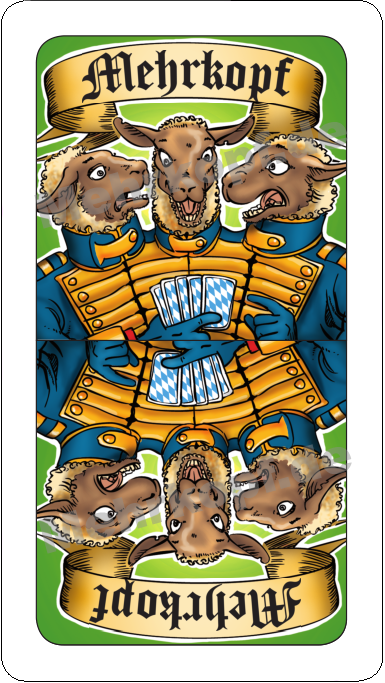 ...enthält ein vollständiges bayrisches Blatt! Somit können alle damit spielbaren Kartenspiele auch mit Mehrkopf gespielt werden. Dabei profitieren Sie von einem modernisierten, verschönertem und dennoch traditionellem Kartenbild!